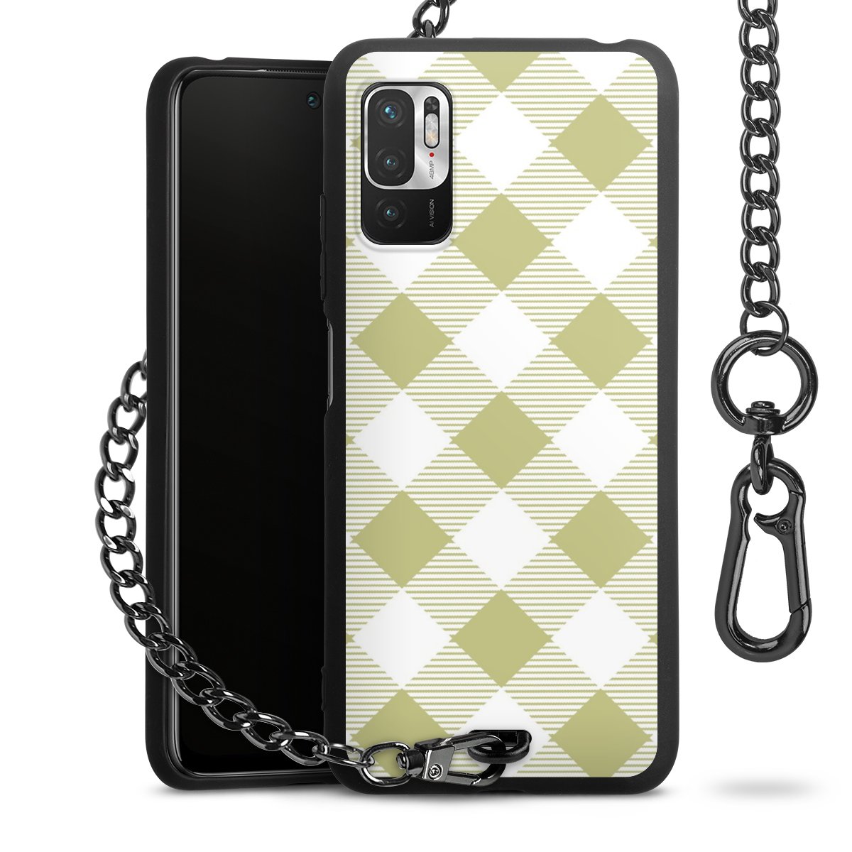 Die mattschwarze Silikon-Handyhülle besteht aus robustem TPU (thermoplastisches Polyurethan). Sie ist flexibel und schützt Dein Smartphone vor Stößen und Kratzern. Die Kette sowie der Karabinerhaken sind aus Metall in Gunmetal-Optik gefertigt. Für dieses Produkt kommen ausschließlich TÜV-geprüfte Materialien zum Einsatz.