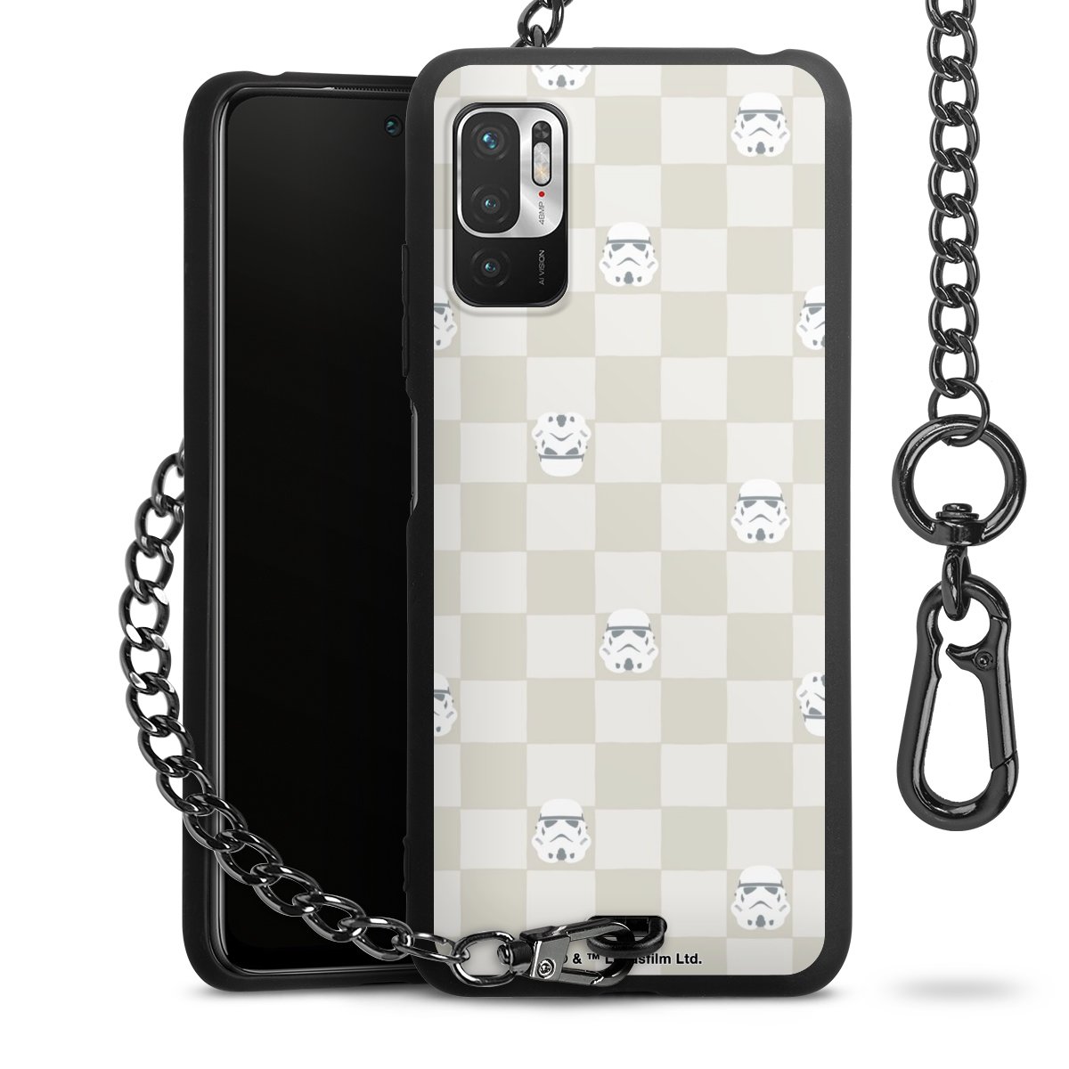 Die mattschwarze Silikon-Handyhülle besteht aus robustem TPU (thermoplastisches Polyurethan). Sie ist flexibel und schützt Dein Smartphone vor Stößen und Kratzern. Die Kette sowie der Karabinerhaken sind aus Metall in Gunmetal-Optik gefertigt. Für dieses Produkt kommen ausschließlich TÜV-geprüfte Materialien zum Einsatz.