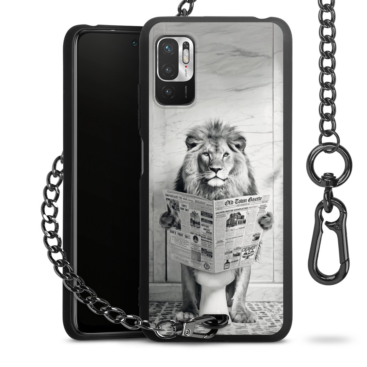 Die mattschwarze Silikon-Handyhülle besteht aus robustem TPU (thermoplastisches Polyurethan). Sie ist flexibel und schützt Dein Smartphone vor Stößen und Kratzern. Die Kette sowie der Karabinerhaken sind aus Metall in Gunmetal-Optik gefertigt. Für dieses Produkt kommen ausschließlich TÜV-geprüfte Materialien zum Einsatz.