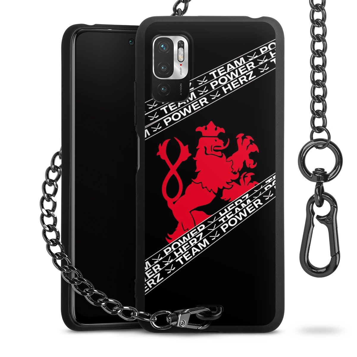 Die mattschwarze Silikon-Handyhülle besteht aus robustem TPU (thermoplastisches Polyurethan). Sie ist flexibel und schützt Dein Smartphone vor Stößen und Kratzern. Die Kette sowie der Karabinerhaken sind aus Metall in Gunmetal-Optik gefertigt. Für dieses Produkt kommen ausschließlich TÜV-geprüfte Materialien zum Einsatz.