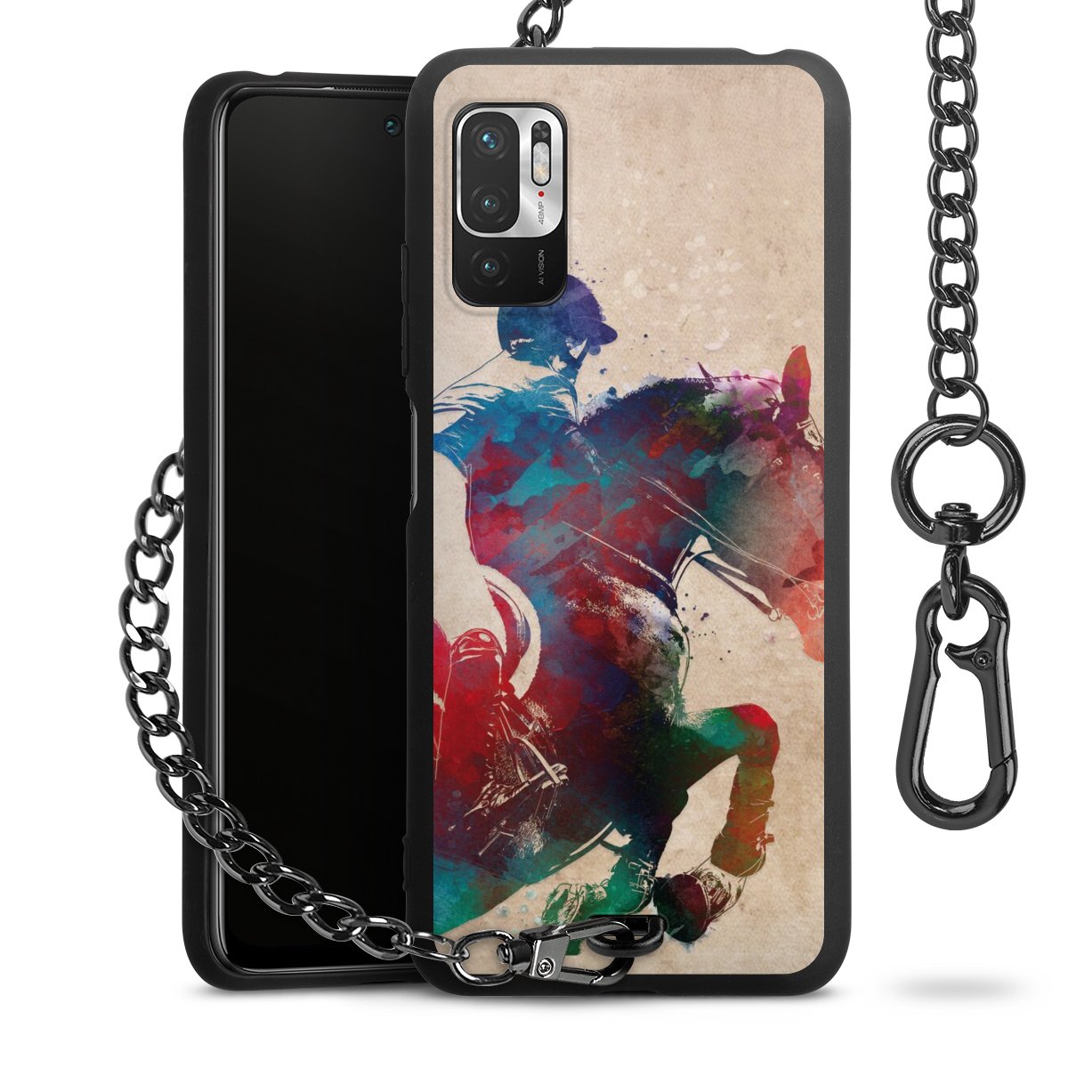 • Mattschwarze Handyhülle mit Metallkette