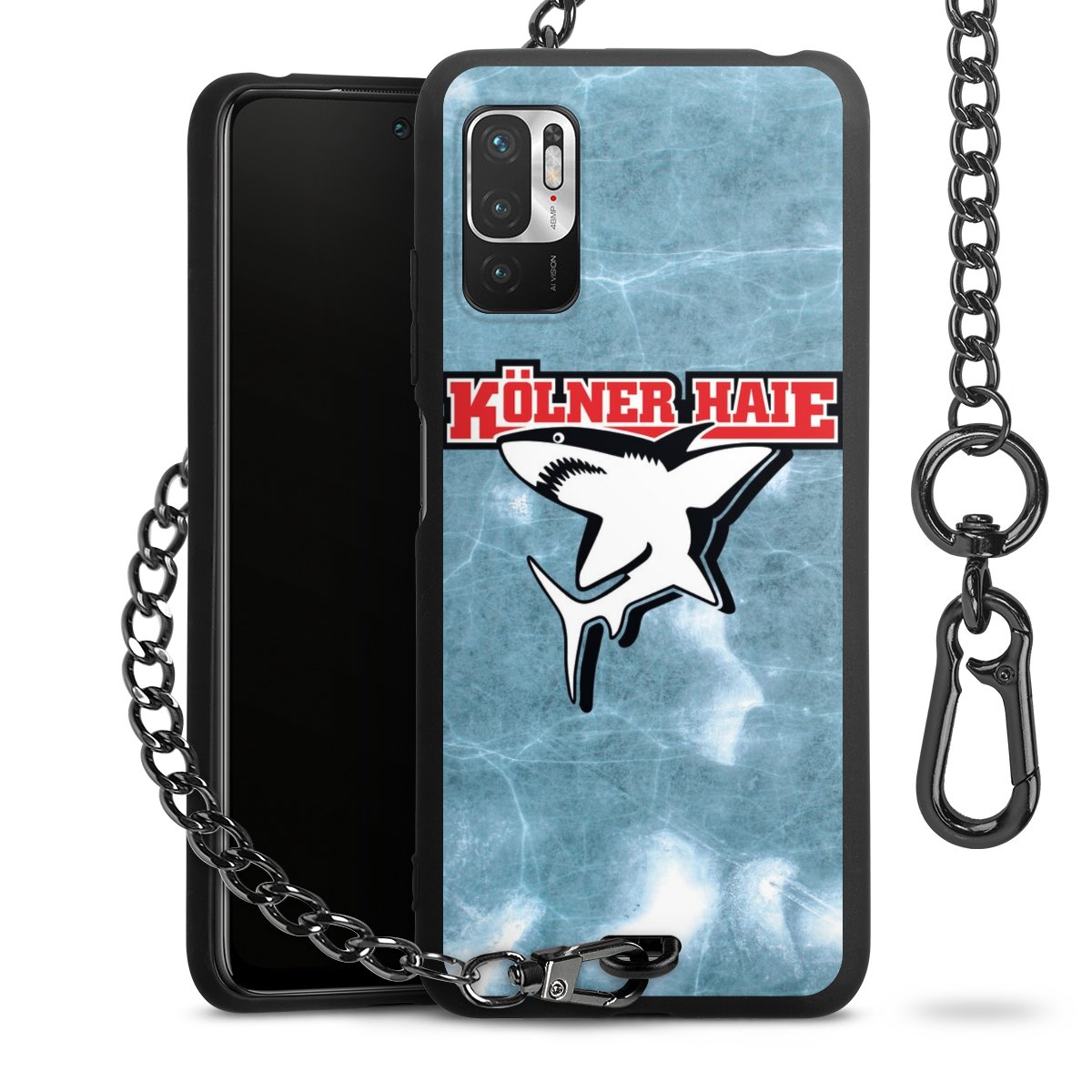 Die mattschwarze Silikon-Handyhülle besteht aus robustem TPU (thermoplastisches Polyurethan). Sie ist flexibel und schützt Dein Smartphone vor Stößen und Kratzern. Die Kette sowie der Karabinerhaken sind aus Metall in Gunmetal-Optik gefertigt. Für dieses Produkt kommen ausschließlich TÜV-geprüfte Materialien zum Einsatz.