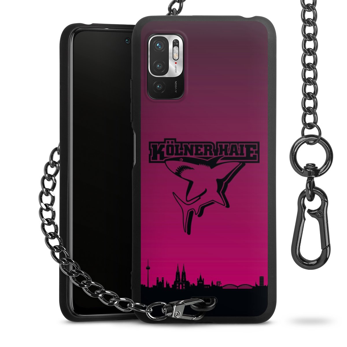 Die mattschwarze Silikon-Handyhülle besteht aus robustem TPU (thermoplastisches Polyurethan). Sie ist flexibel und schützt Dein Smartphone vor Stößen und Kratzern. Die Kette sowie der Karabinerhaken sind aus Metall in Gunmetal-Optik gefertigt. Für dieses Produkt kommen ausschließlich TÜV-geprüfte Materialien zum Einsatz.