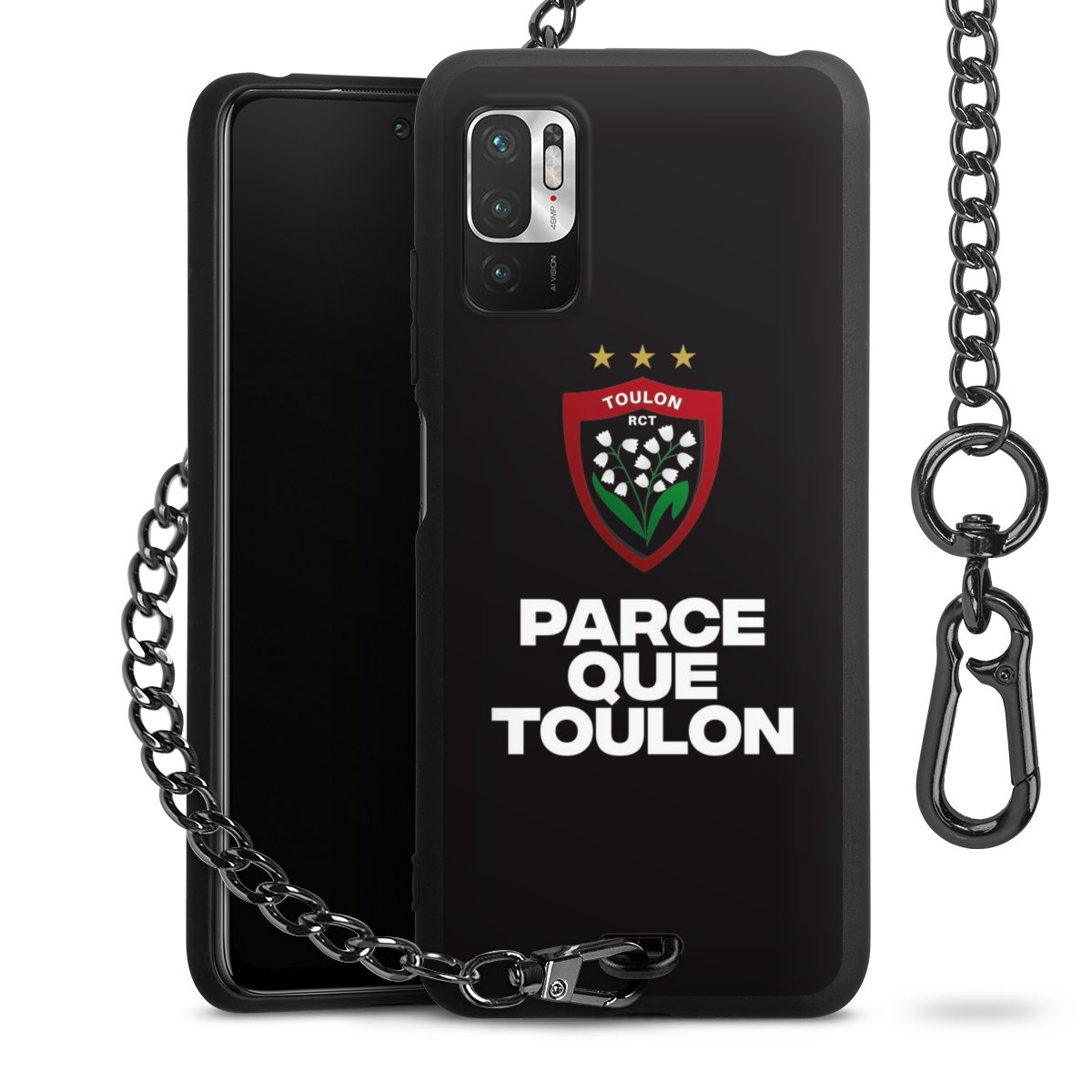 - Mattschwarze Handyhülle mit Metallkette
