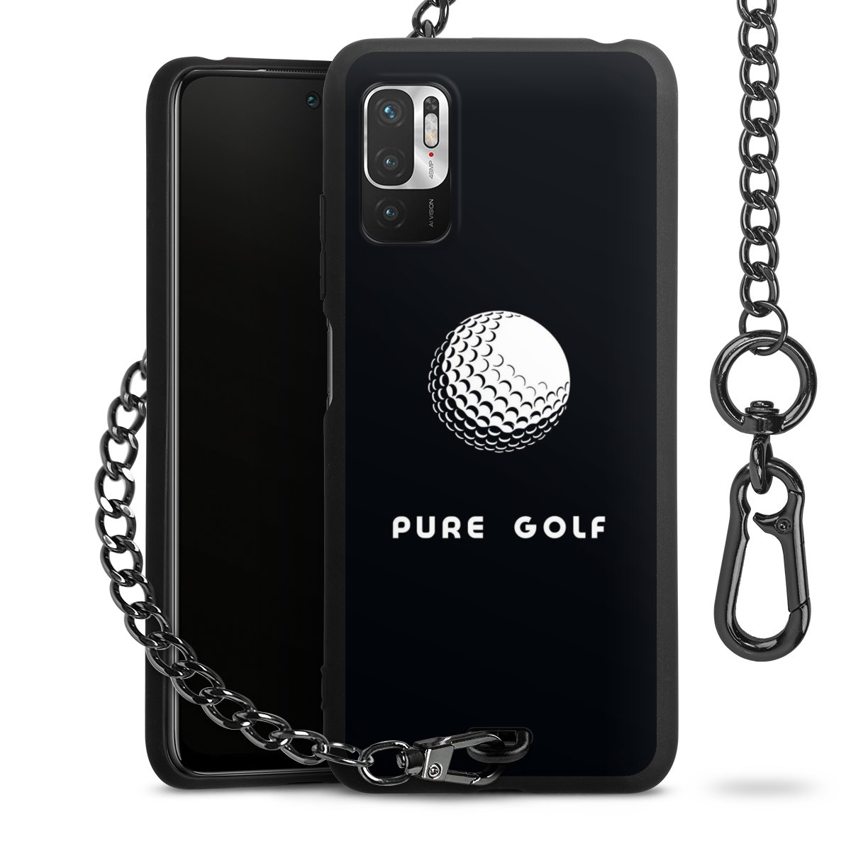 • Mattschwarze Handyhülle mit Metallkette