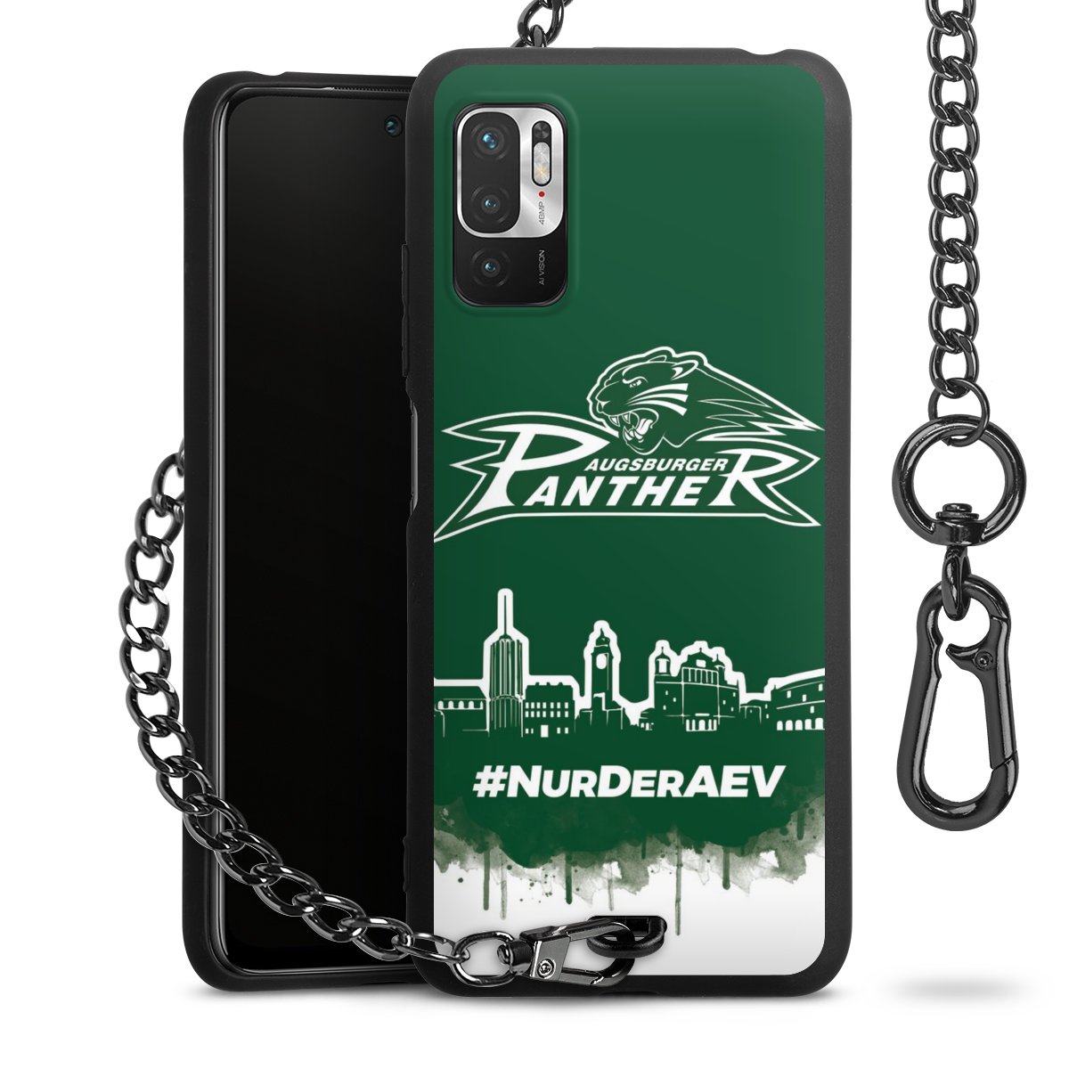 Die mattschwarze Silikon-Handyhülle besteht aus robustem TPU (thermoplastisches Polyurethan). Sie ist flexibel und schützt Dein Smartphone vor Stößen und Kratzern. Die Kette sowie der Karabinerhaken sind aus Metall in Gunmetal-Optik gefertigt. Für dieses Produkt kommen ausschließlich TÜV-geprüfte Materialien zum Einsatz.