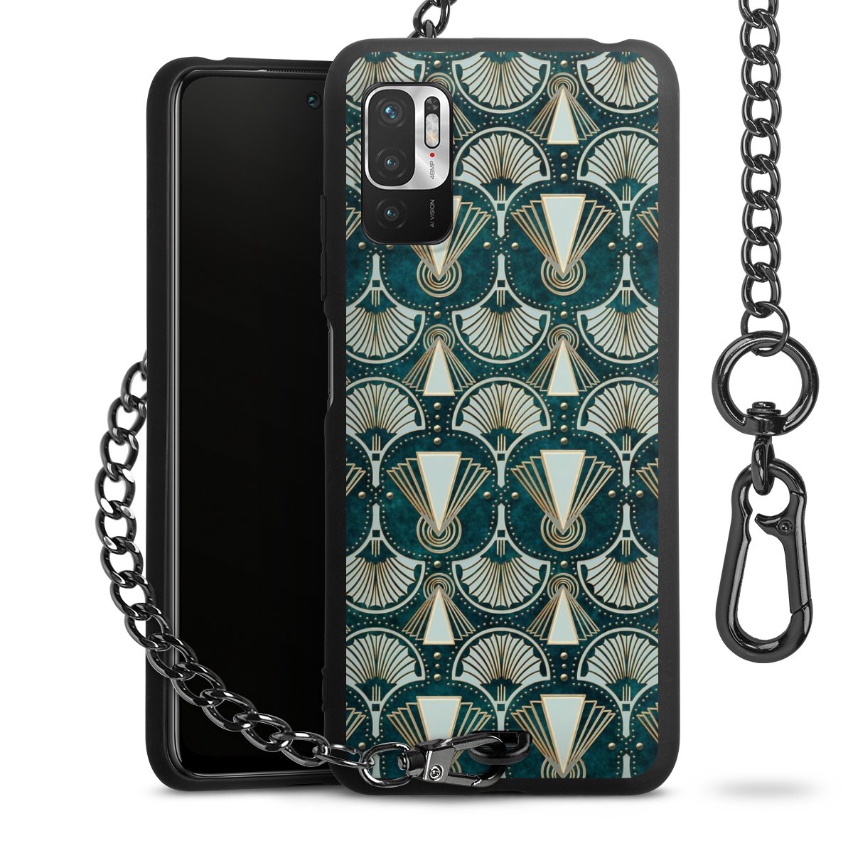 • Mattschwarze Handyhülle mit Metallkette