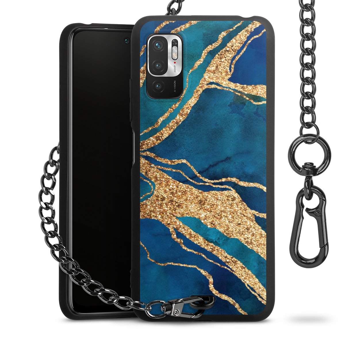 • Mattschwarze Handyhülle mit Metallkette