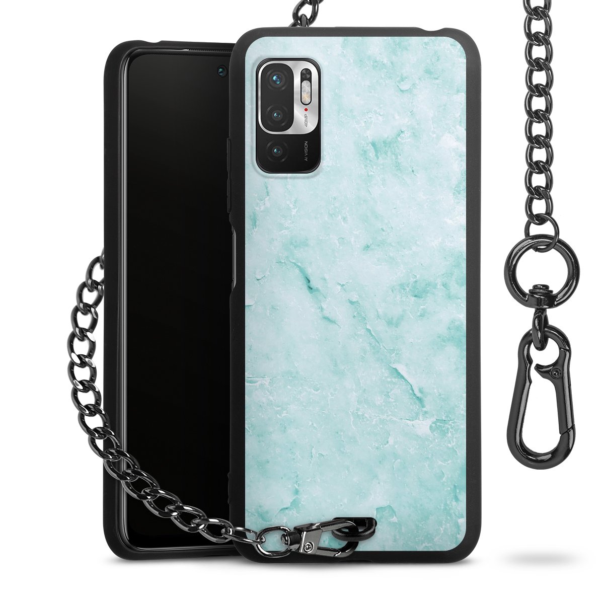 Die mattschwarze Silikon-Handyhülle besteht aus robustem TPU (thermoplastisches Polyurethan). Sie ist flexibel und schützt Dein Smartphone vor Stößen und Kratzern. Die Kette sowie der Karabinerhaken sind aus Metall in Gunmetal-Optik gefertigt. Für dieses Produkt kommen ausschließlich TÜV-geprüfte Materialien zum Einsatz.