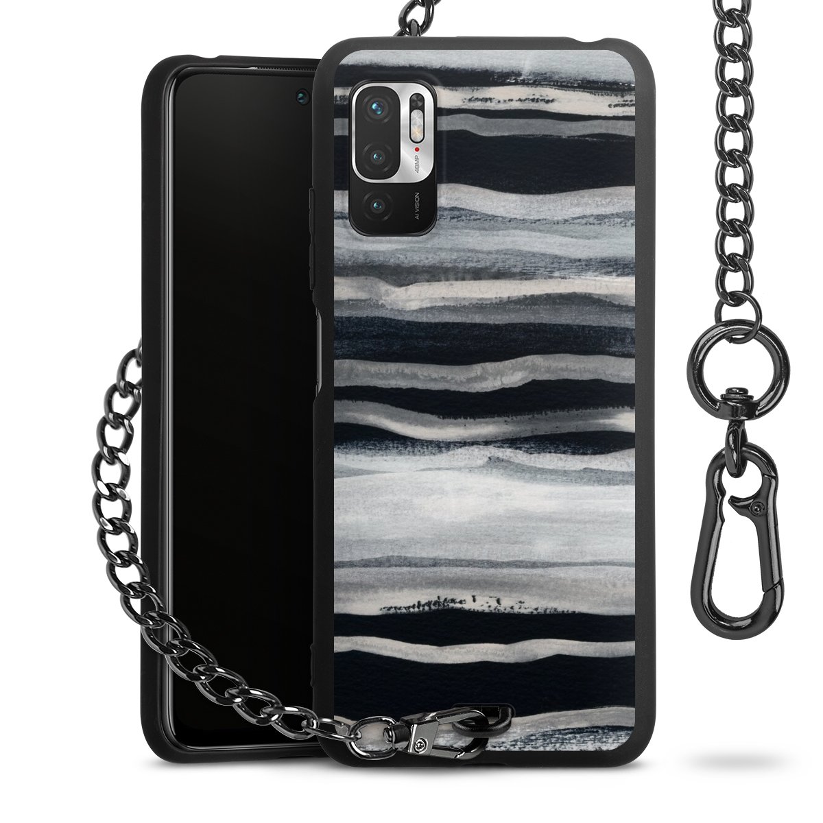 • Mattschwarze Handyhülle mit Metallkette