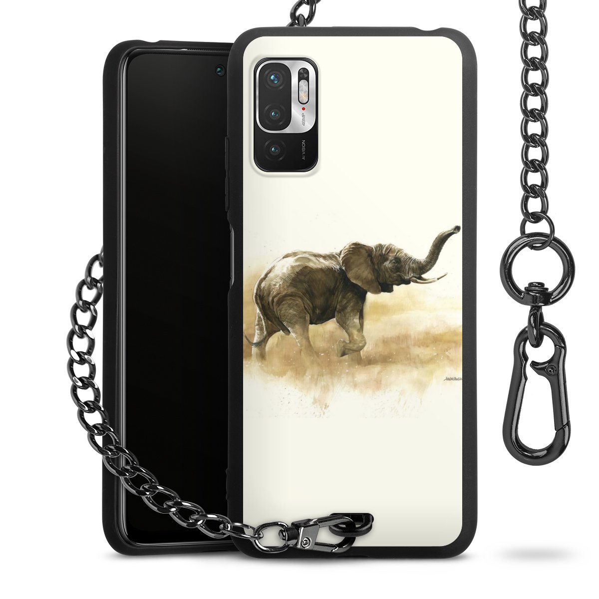 Die mattschwarze Silikon-Handyhülle besteht aus robustem TPU (thermoplastisches Polyurethan). Sie ist flexibel und schützt Dein Smartphone vor Stößen und Kratzern. Die Kette sowie der Karabinerhaken sind aus Metall in Gunmetal-Optik gefertigt. Für dieses Produkt kommen ausschließlich TÜV-geprüfte Materialien zum Einsatz.