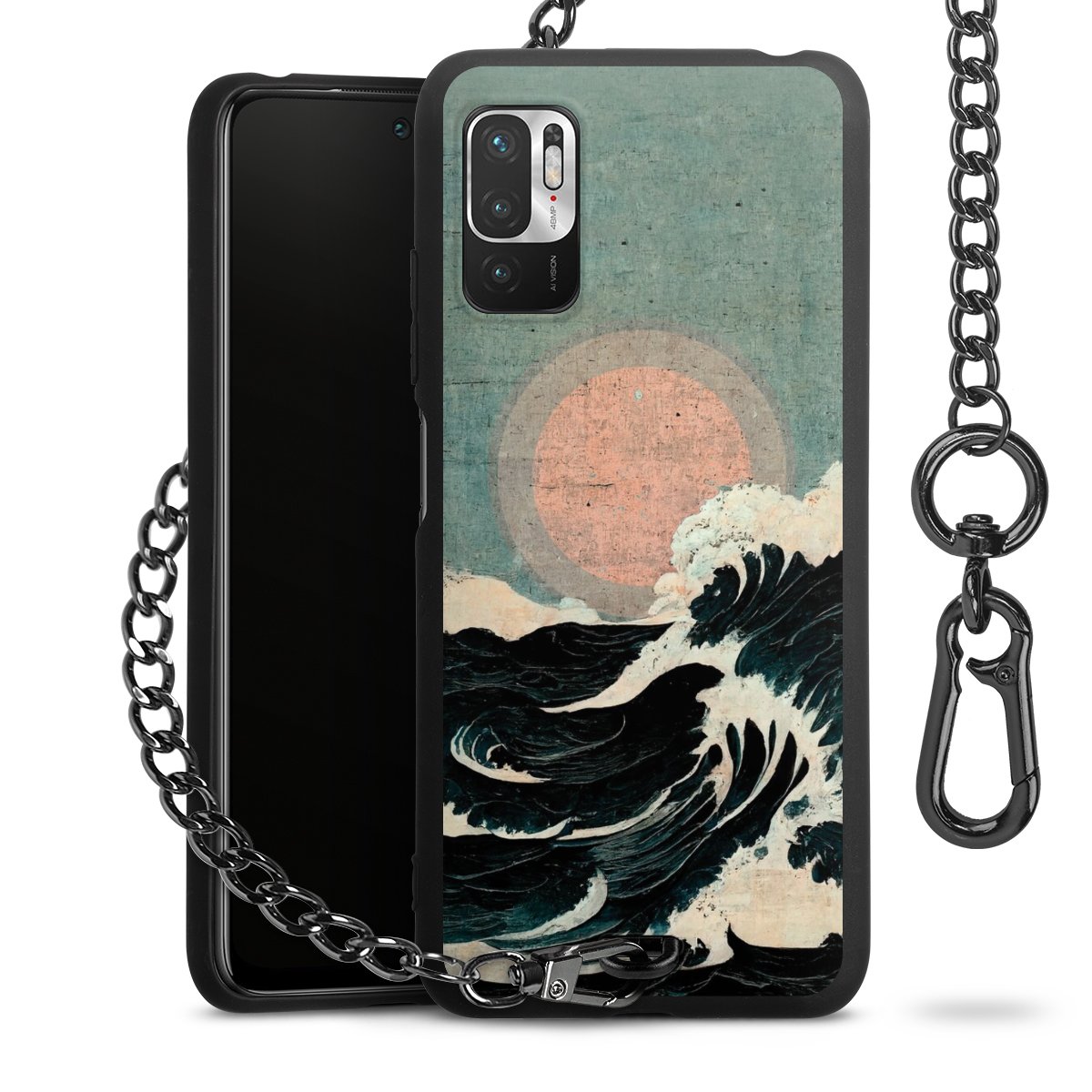 • Mattschwarze Handyhülle mit Metallkette
