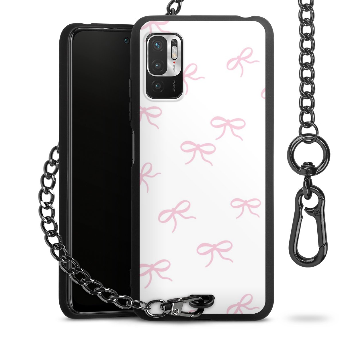 - Mattschwarze Handyhülle mit Metallkette