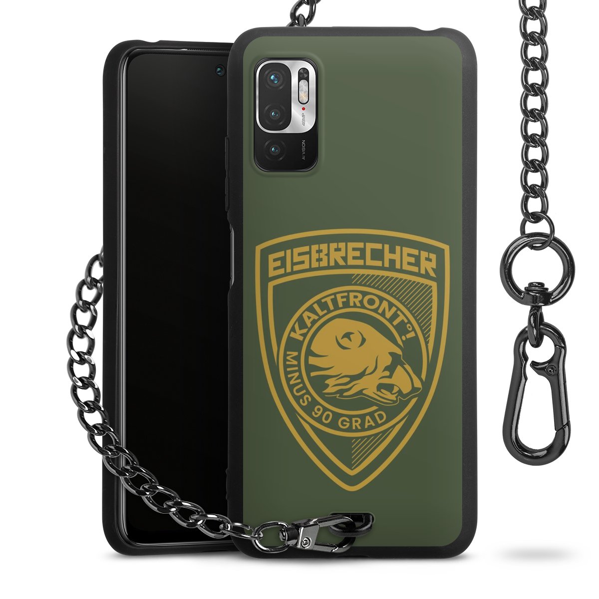 Die mattschwarze Silikon-Handyhülle besteht aus robustem TPU (thermoplastisches Polyurethan). Sie ist flexibel und schützt Dein Smartphone vor Stößen und Kratzern. Die Kette sowie der Karabinerhaken sind aus Metall in Gunmetal-Optik gefertigt. Für dieses Produkt kommen ausschließlich TÜV-geprüfte Materialien zum Einsatz.
