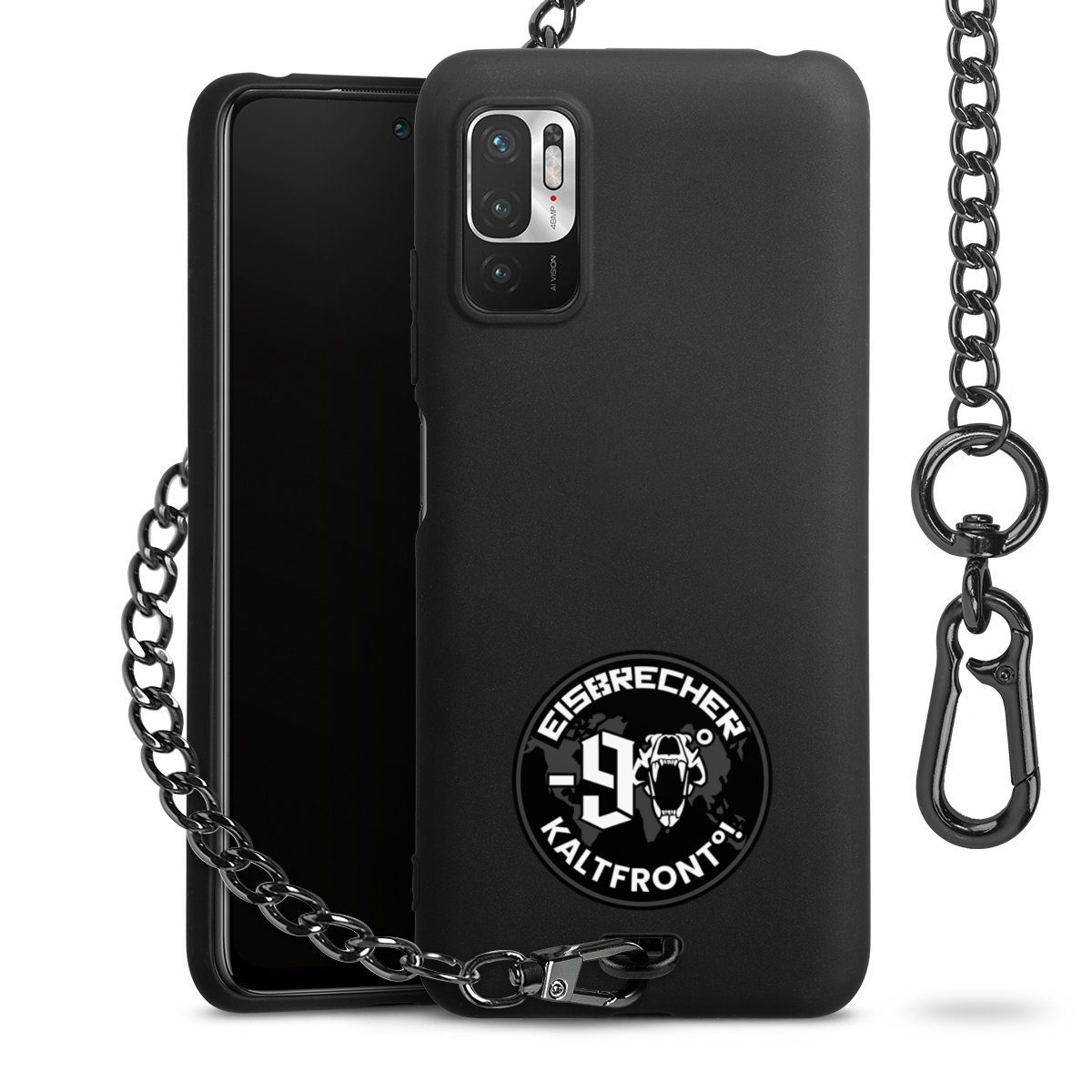 • Mattschwarze Handyhülle mit Metallkette
