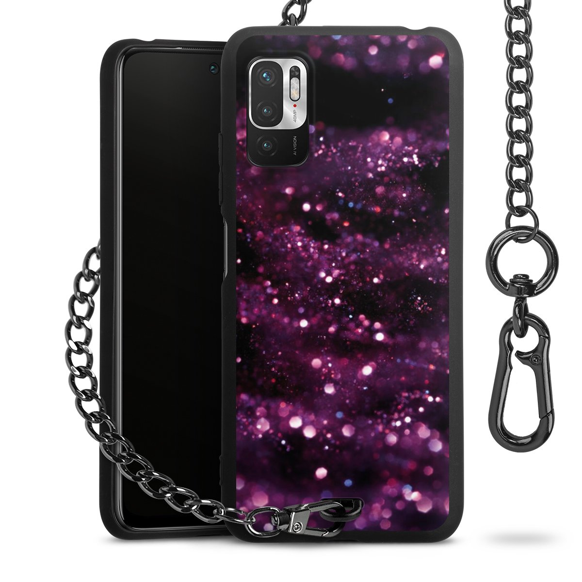 - Mattschwarze Handyhülle mit Metallkette