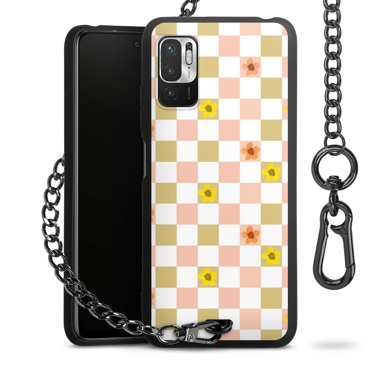 Die mattschwarze Silikon-Handyhülle besteht aus robustem TPU (thermoplastisches Polyurethan). Sie ist flexibel und schützt Dein Smartphone vor Stößen und Kratzern. Die Kette sowie der Karabinerhaken sind aus Metall in Gunmetal-Optik gefertigt. Für dieses Produkt kommen ausschließlich TÜV-geprüfte Materialien zum Einsatz.