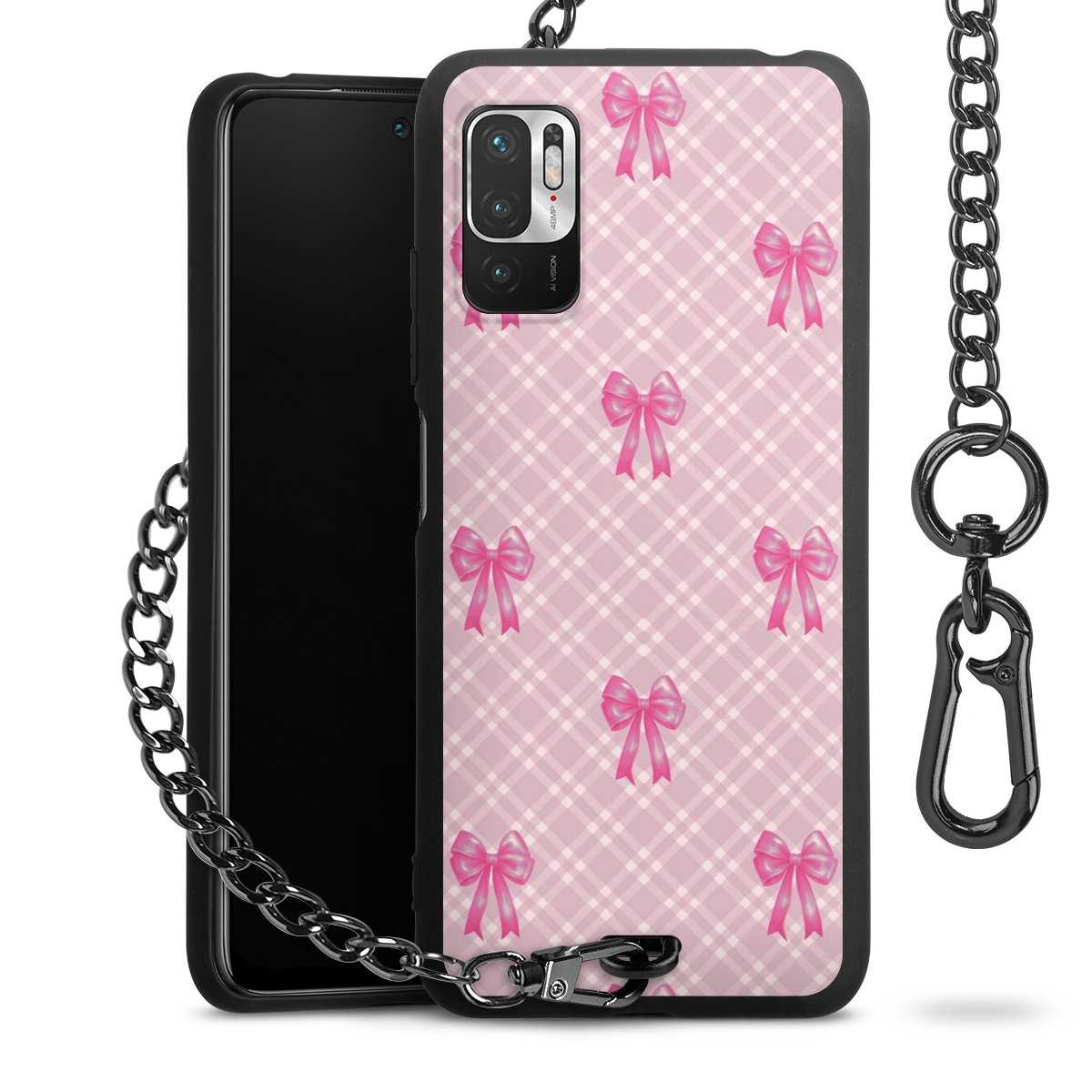 • Mattschwarze Handyhülle mit Metallkette