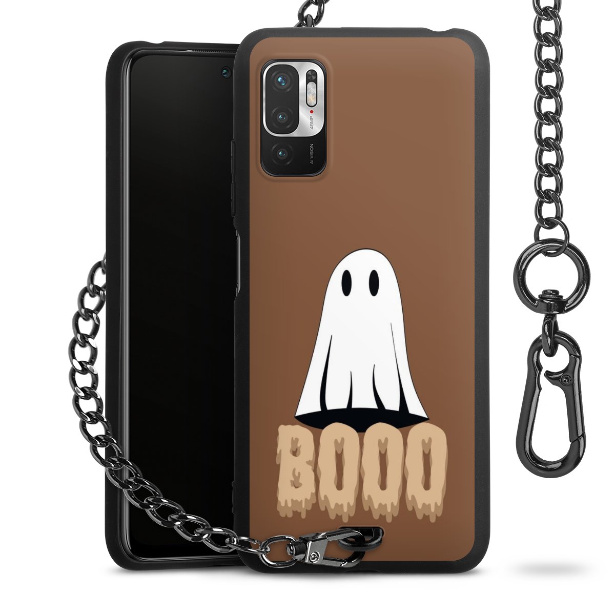 - Mattschwarze Handyhülle mit Metallkette