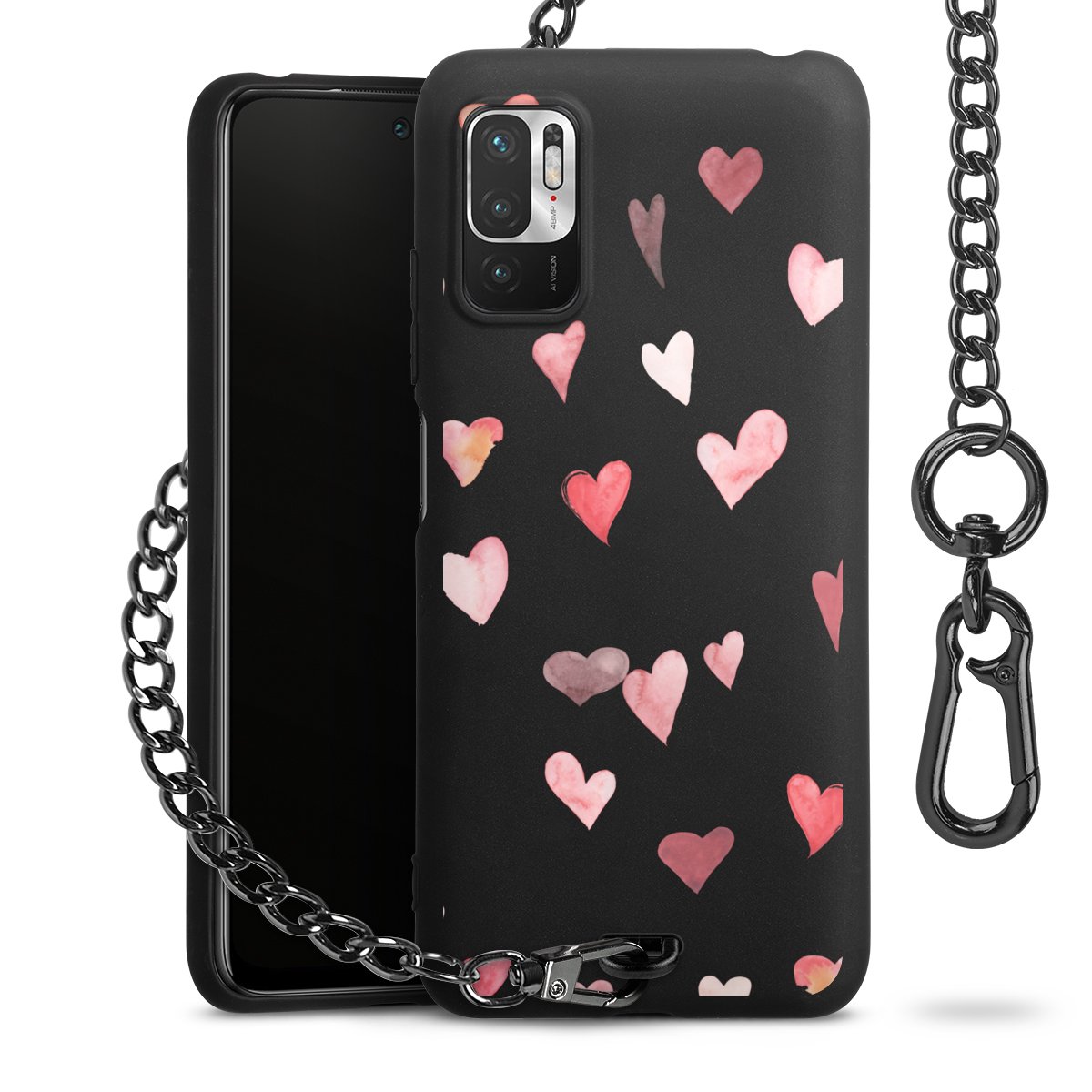 • Mattschwarze Handyhülle mit Metallkette