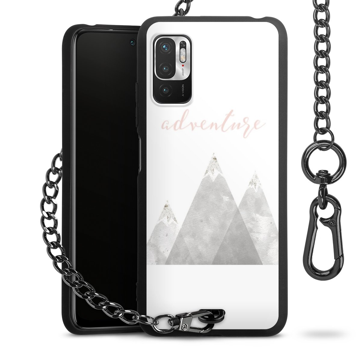 Die mattschwarze Silikon-Handyhülle besteht aus robustem TPU (thermoplastisches Polyurethan). Sie ist flexibel und schützt Dein Smartphone vor Stößen und Kratzern. Die Kette sowie der Karabinerhaken sind aus Metall in Gunmetal-Optik gefertigt. Für dieses Produkt kommen ausschließlich TÜV-geprüfte Materialien zum Einsatz.