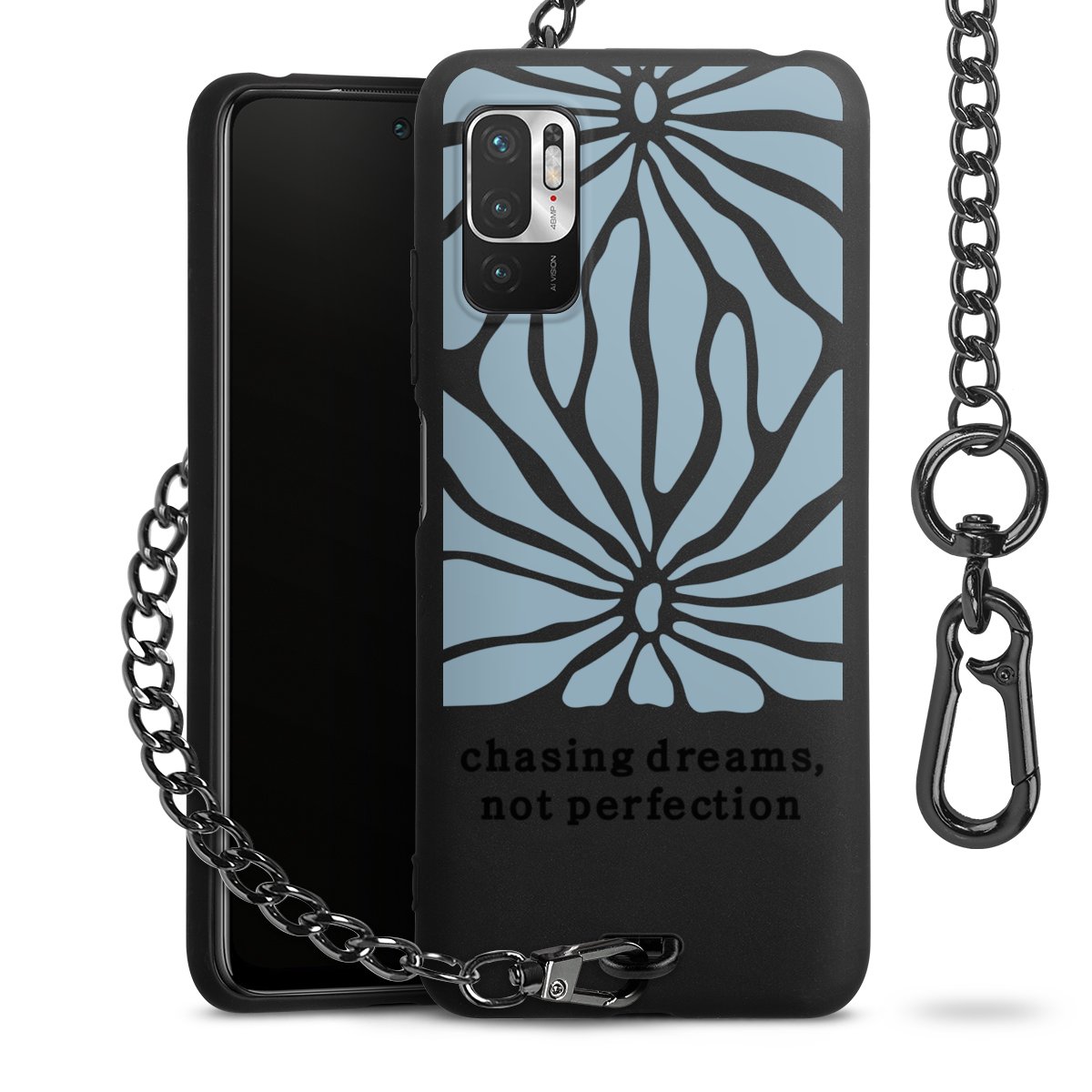 - Mattschwarze Handyhülle mit Metallkette