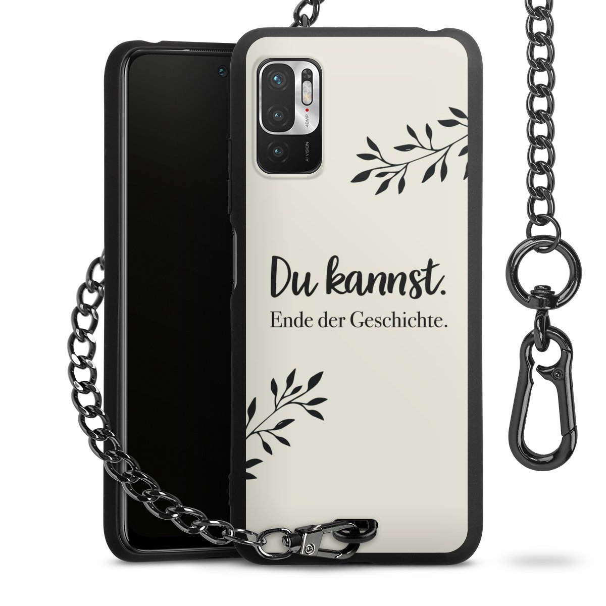 Die mattschwarze Silikon-Handyhülle besteht aus robustem TPU (thermoplastisches Polyurethan). Sie ist flexibel und schützt Dein Smartphone vor Stößen und Kratzern. Die Kette sowie der Karabinerhaken sind aus Metall in Gunmetal-Optik gefertigt. Für dieses Produkt kommen ausschließlich TÜV-geprüfte Materialien zum Einsatz.