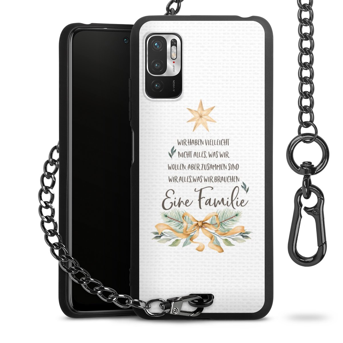 - Mattschwarze Handyhülle mit Metallkette