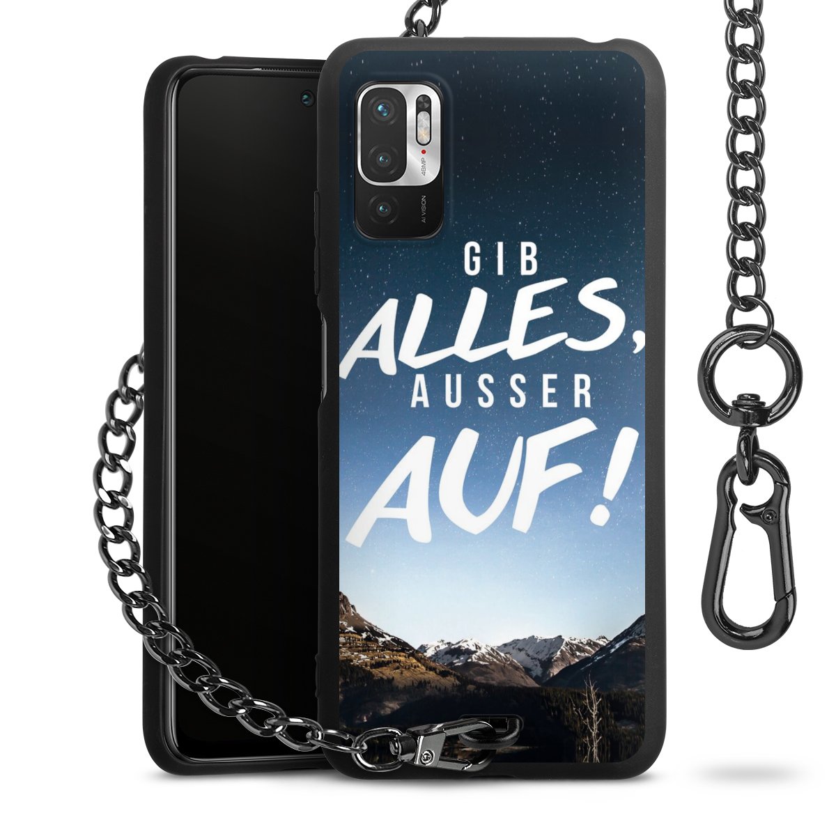 • Mattschwarze Handyhülle mit Metallkette