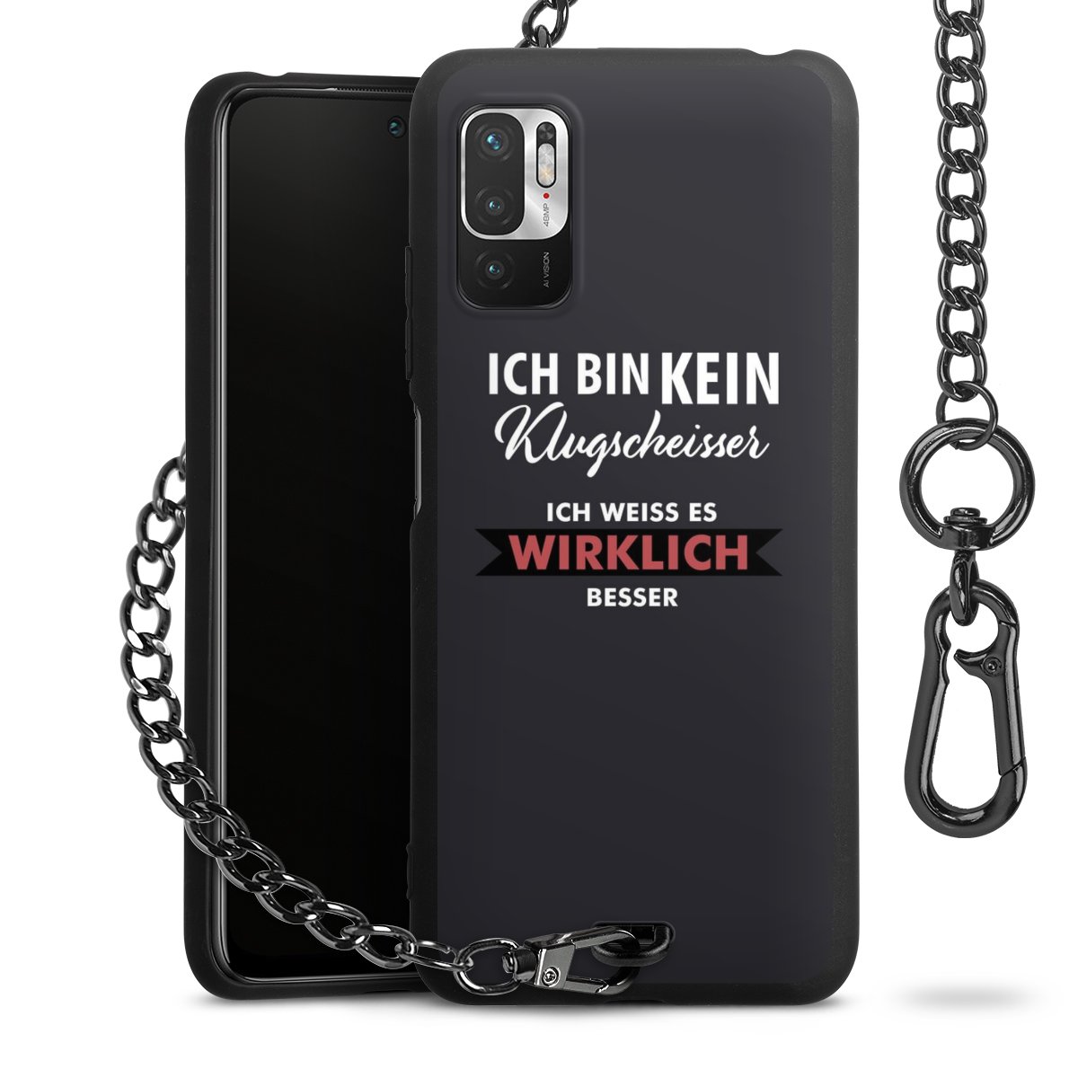 • Mattschwarze Handyhülle mit Metallkette