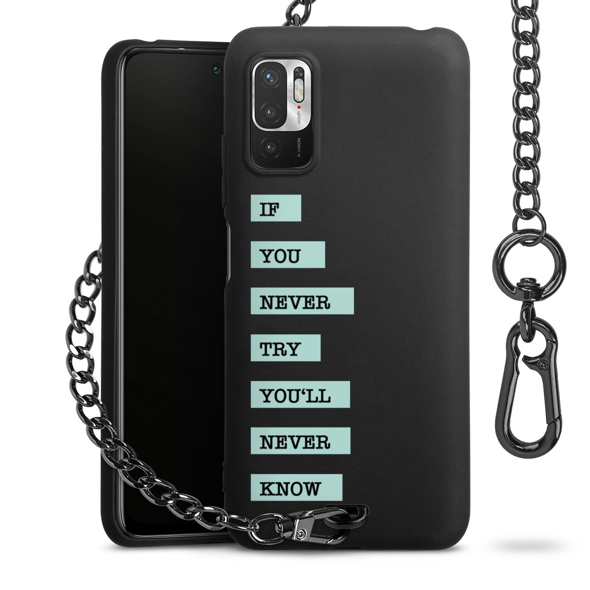 - Mattschwarze Handyhülle mit Metallkette