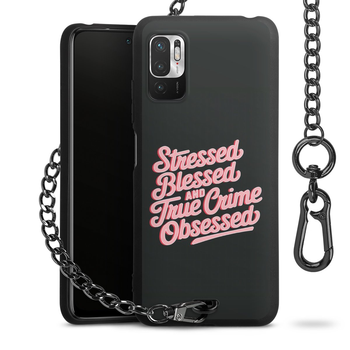 • Mattschwarze Handyhülle mit Metallkette