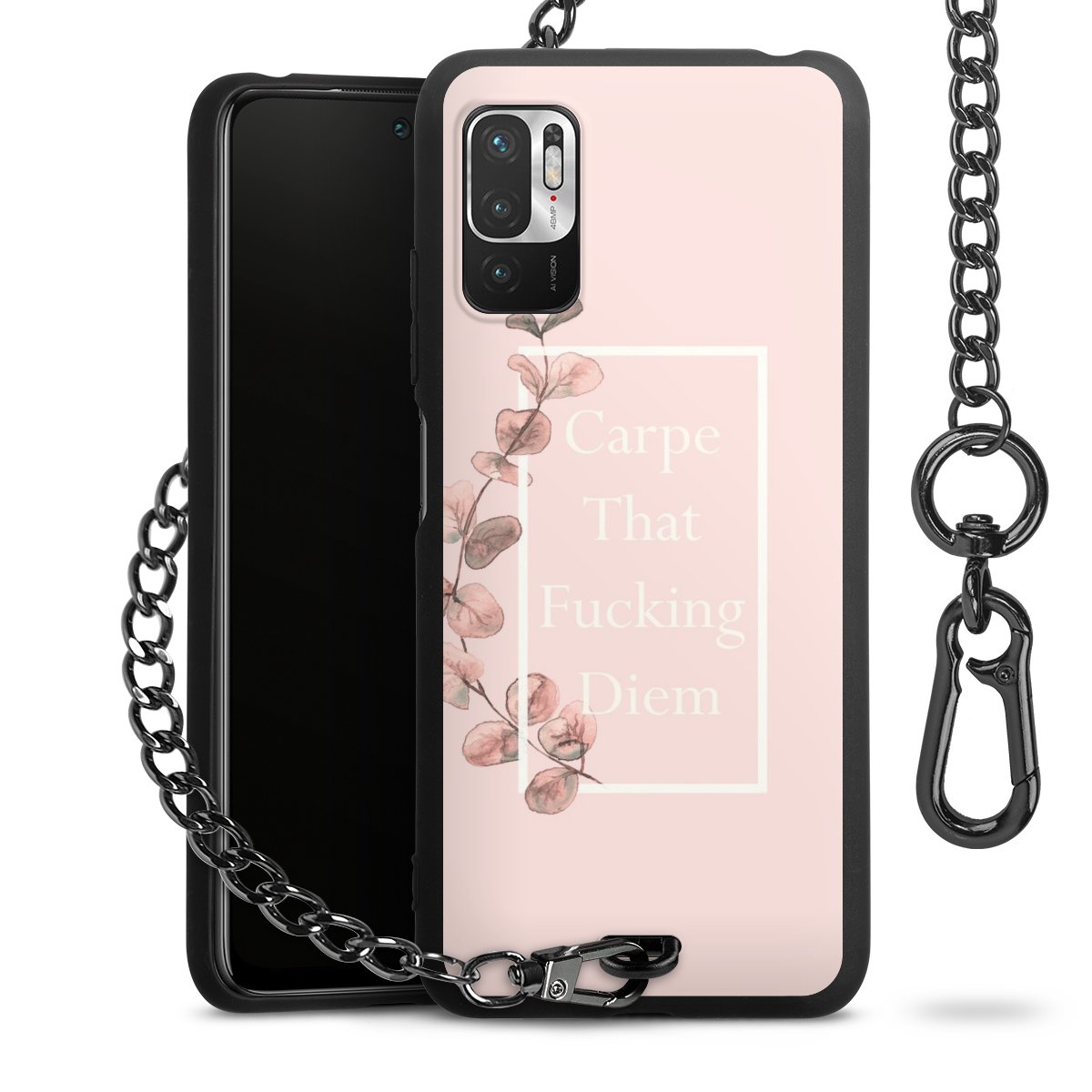 Die mattschwarze Silikon-Handyhülle besteht aus robustem TPU (thermoplastisches Polyurethan). Sie ist flexibel und schützt Dein Smartphone vor Stößen und Kratzern. Die Kette sowie der Karabinerhaken sind aus Metall in Gunmetal-Optik gefertigt. Für dieses Produkt kommen ausschließlich TÜV-geprüfte Materialien zum Einsatz.