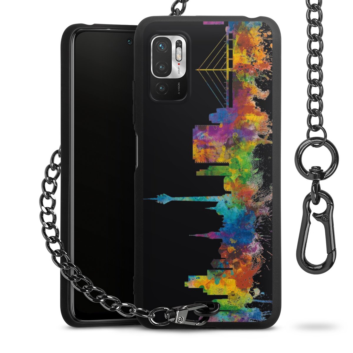 Die mattschwarze Silikon-Handyhülle besteht aus robustem TPU (thermoplastisches Polyurethan). Sie ist flexibel und schützt Dein Smartphone vor Stößen und Kratzern. Die Kette sowie der Karabinerhaken sind aus Metall in Gunmetal-Optik gefertigt. Für dieses Produkt kommen ausschließlich TÜV-geprüfte Materialien zum Einsatz.