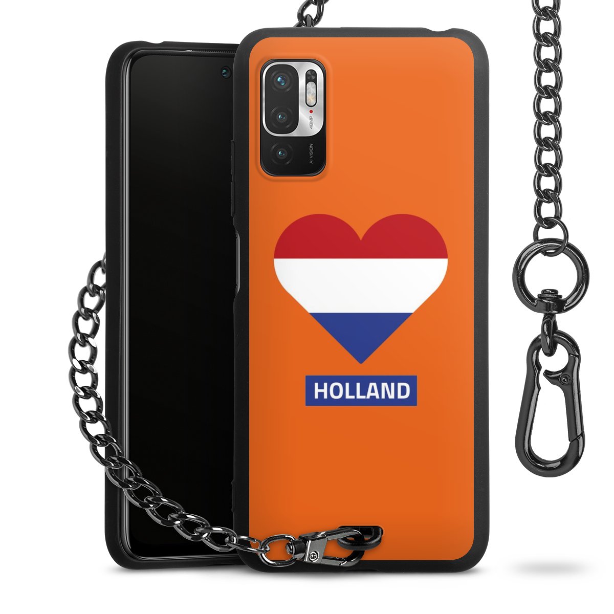 Die mattschwarze Silikon-Handyhülle besteht aus robustem TPU (thermoplastisches Polyurethan). Sie ist flexibel und schützt Dein Smartphone vor Stößen und Kratzern. Die Kette sowie der Karabinerhaken sind aus Metall in Gunmetal-Optik gefertigt. Für dieses Produkt kommen ausschließlich TÜV-geprüfte Materialien zum Einsatz.