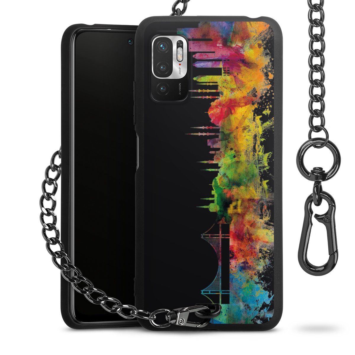 Die mattschwarze Silikon-Handyhülle besteht aus robustem TPU (thermoplastisches Polyurethan). Sie ist flexibel und schützt Dein Smartphone vor Stößen und Kratzern. Die Kette sowie der Karabinerhaken sind aus Metall in Gunmetal-Optik gefertigt. Für dieses Produkt kommen ausschließlich TÜV-geprüfte Materialien zum Einsatz.