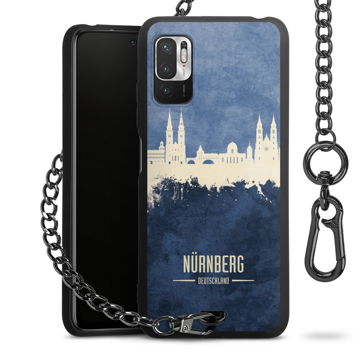 Die mattschwarze Silikon-Handyhülle besteht aus robustem TPU (thermoplastisches Polyurethan). Sie ist flexibel und schützt Dein Smartphone vor Stößen und Kratzern. Die Kette sowie der Karabinerhaken sind aus Metall in Gunmetal-Optik gefertigt. Für dieses Produkt kommen ausschließlich TÜV-geprüfte Materialien zum Einsatz.