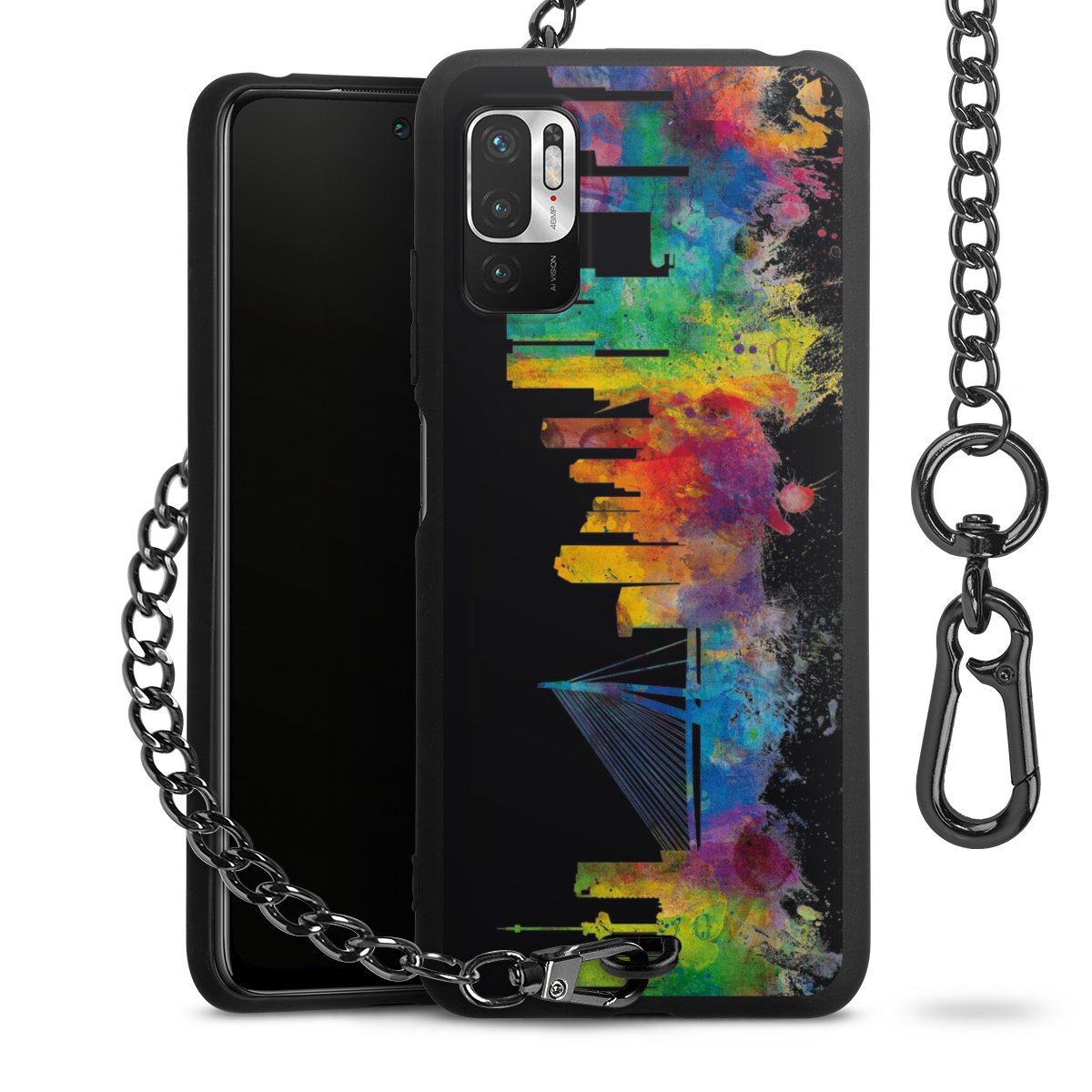 Die mattschwarze Silikon-Handyhülle besteht aus robustem TPU (thermoplastisches Polyurethan). Sie ist flexibel und schützt Dein Smartphone vor Stößen und Kratzern. Die Kette sowie der Karabinerhaken sind aus Metall in Gunmetal-Optik gefertigt. Für dieses Produkt kommen ausschließlich TÜV-geprüfte Materialien zum Einsatz.