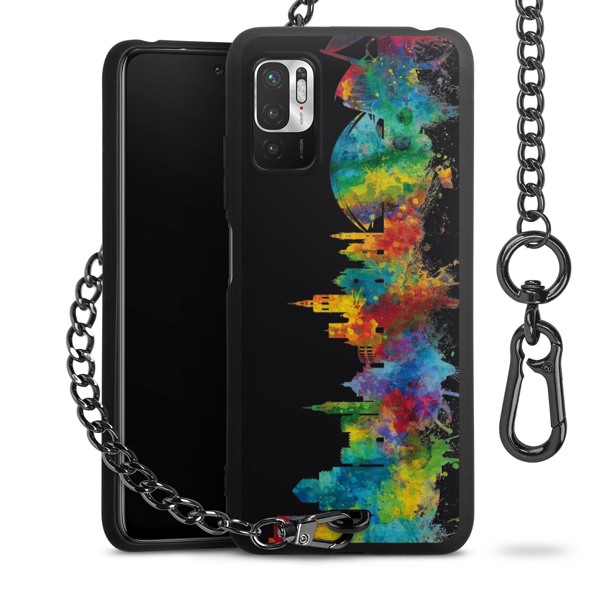 Die mattschwarze Silikon-Handyhülle besteht aus robustem TPU (thermoplastisches Polyurethan). Sie ist flexibel und schützt Dein Smartphone vor Stößen und Kratzern. Die Kette sowie der Karabinerhaken sind aus Metall in Gunmetal-Optik gefertigt. Für dieses Produkt kommen ausschließlich TÜV-geprüfte Materialien zum Einsatz.