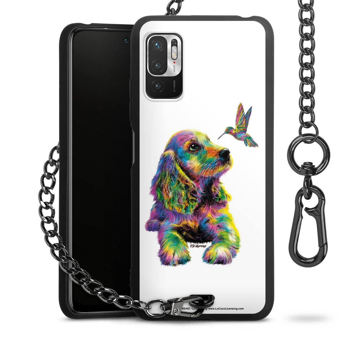 Die Handyhülle verfügt über eine mittig am unteren Rand platzierte Öse, an der die Metallkette stabil befestigt ist. Bestelle die Hülle einfach für Dein Smartphone-Modell, dann passt sie wie angegossen und Du brauchst sie bloß einmal anzudrücken. Handy in die Tasche, Karabiner an den Hosenbund – schon kann die Party starten.