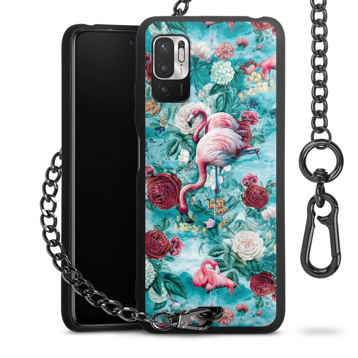 Die mattschwarze Silikon-Handyhülle besteht aus robustem TPU (thermoplastisches Polyurethan). Sie ist flexibel und schützt Dein Smartphone vor Stößen und Kratzern. Die Kette sowie der Karabinerhaken sind aus Metall in Gunmetal-Optik gefertigt. Für dieses Produkt kommen ausschließlich TÜV-geprüfte Materialien zum Einsatz.