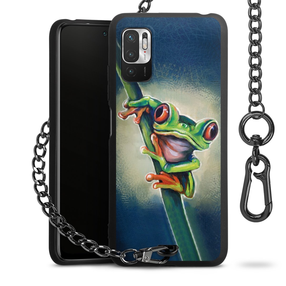 • Mattschwarze Handyhülle mit Metallkette