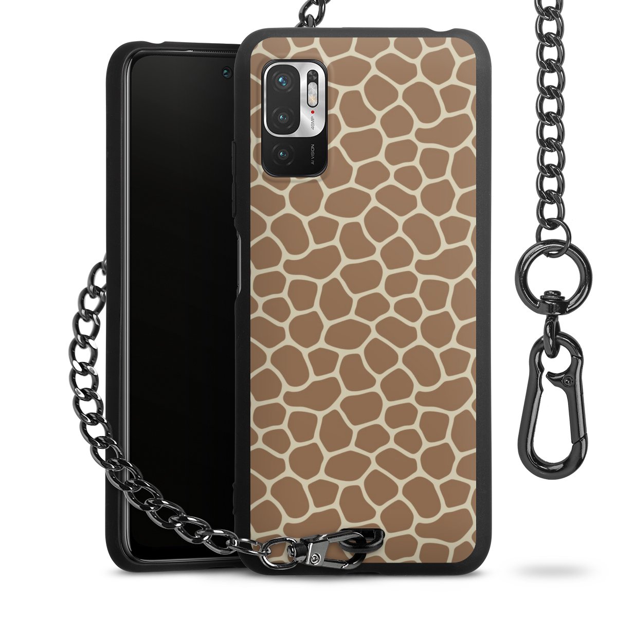 - Mattschwarze Handyhülle mit Metallkette