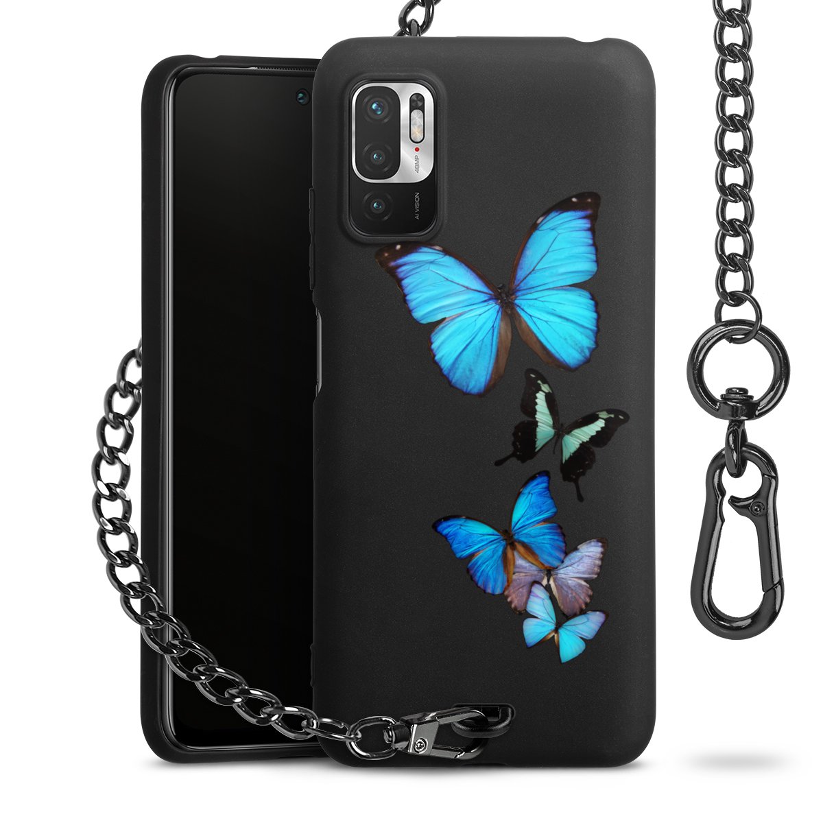 • Mattschwarze Handyhülle mit Metallkette