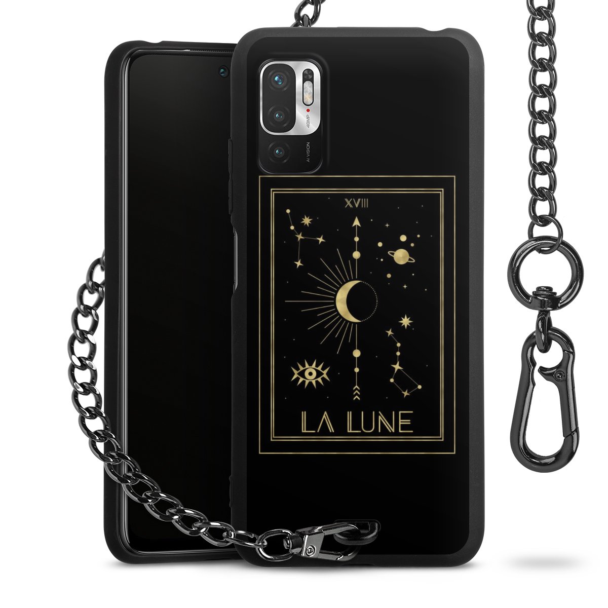 Die mattschwarze Silikon-Handyhülle besteht aus robustem TPU (thermoplastisches Polyurethan). Sie ist flexibel und schützt Dein Smartphone vor Stößen und Kratzern. Die Kette sowie der Karabinerhaken sind aus Metall in Gunmetal-Optik gefertigt. Für dieses Produkt kommen ausschließlich TÜV-geprüfte Materialien zum Einsatz.
