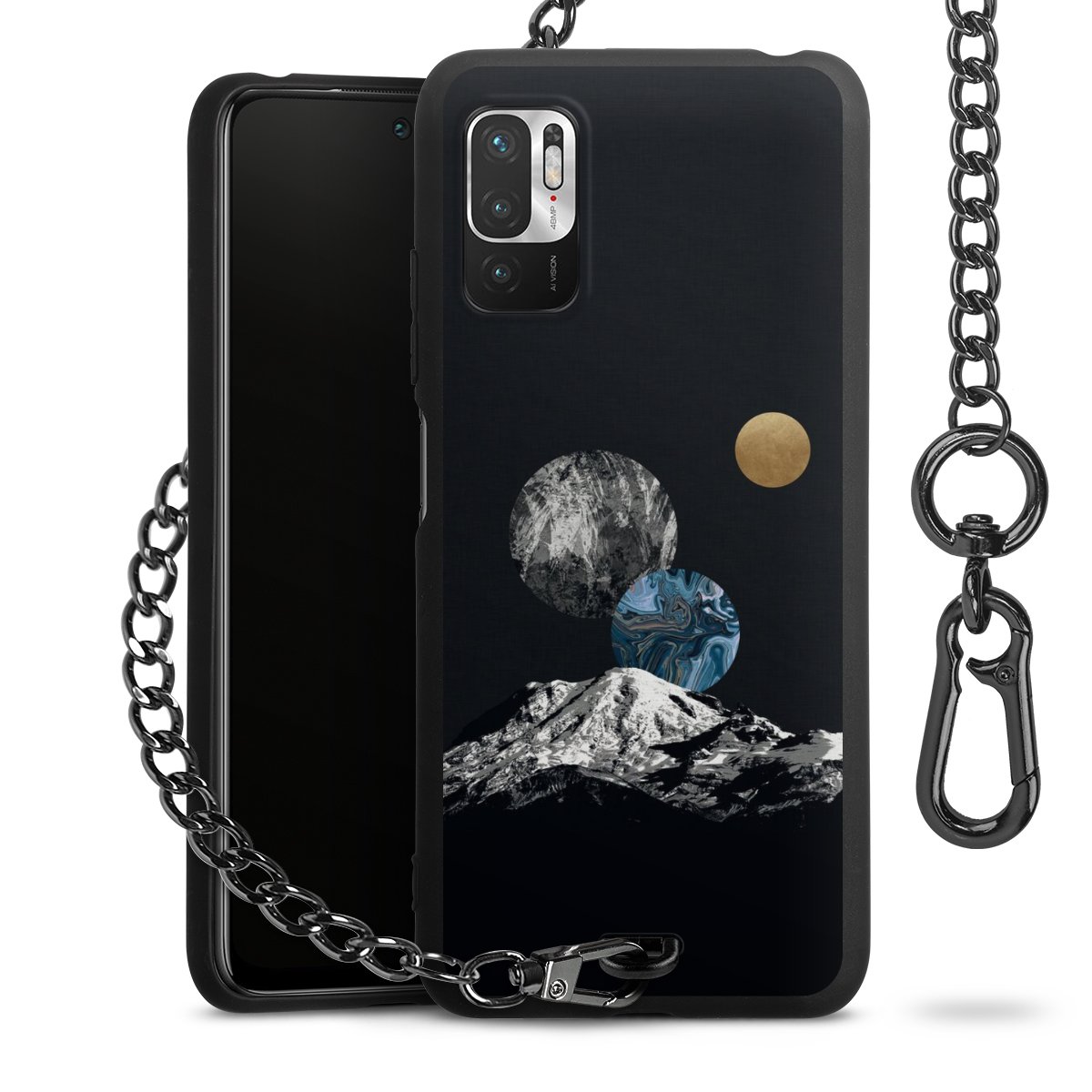 • Mattschwarze Handyhülle mit Metallkette