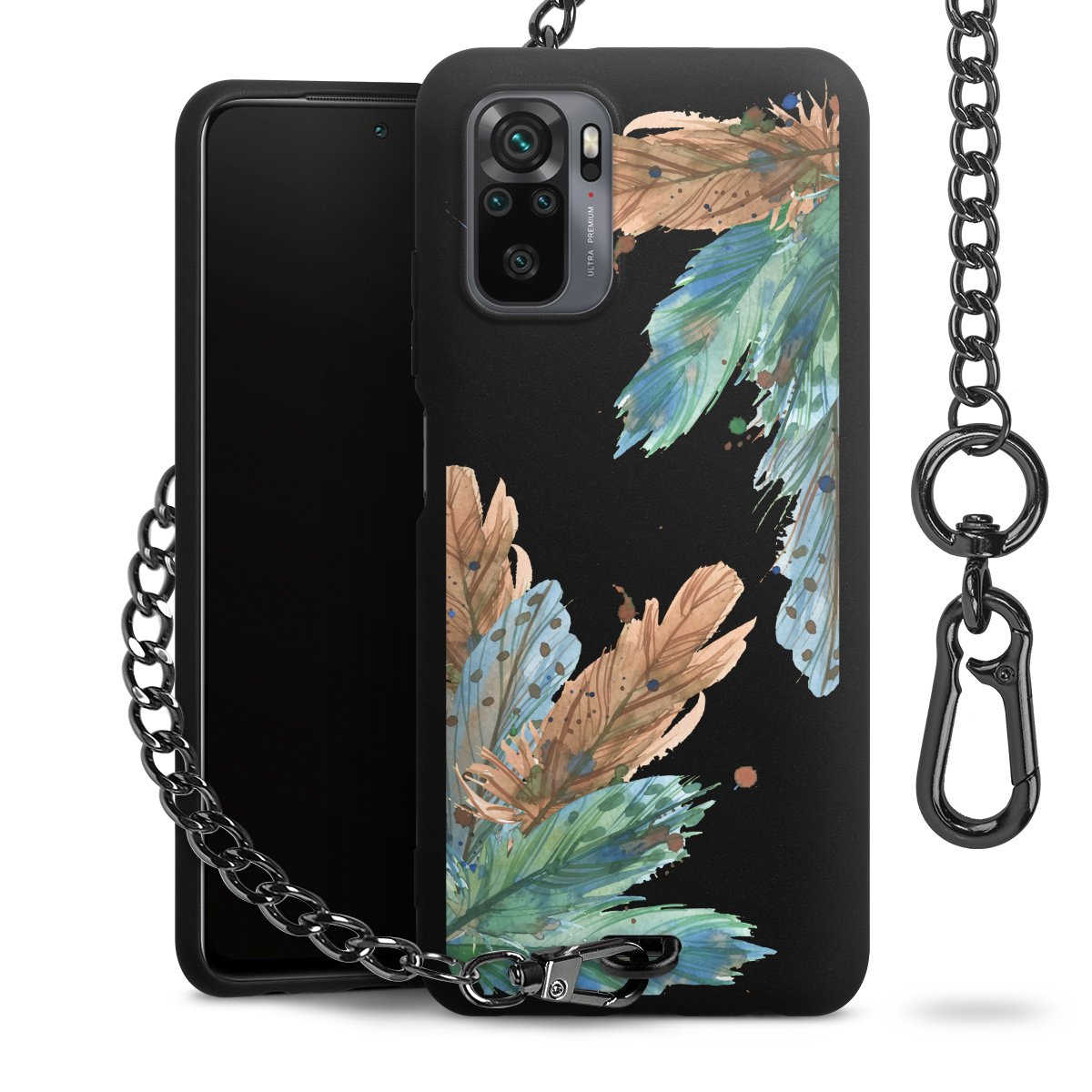 • Mattschwarze Handyhülle mit Metallkette