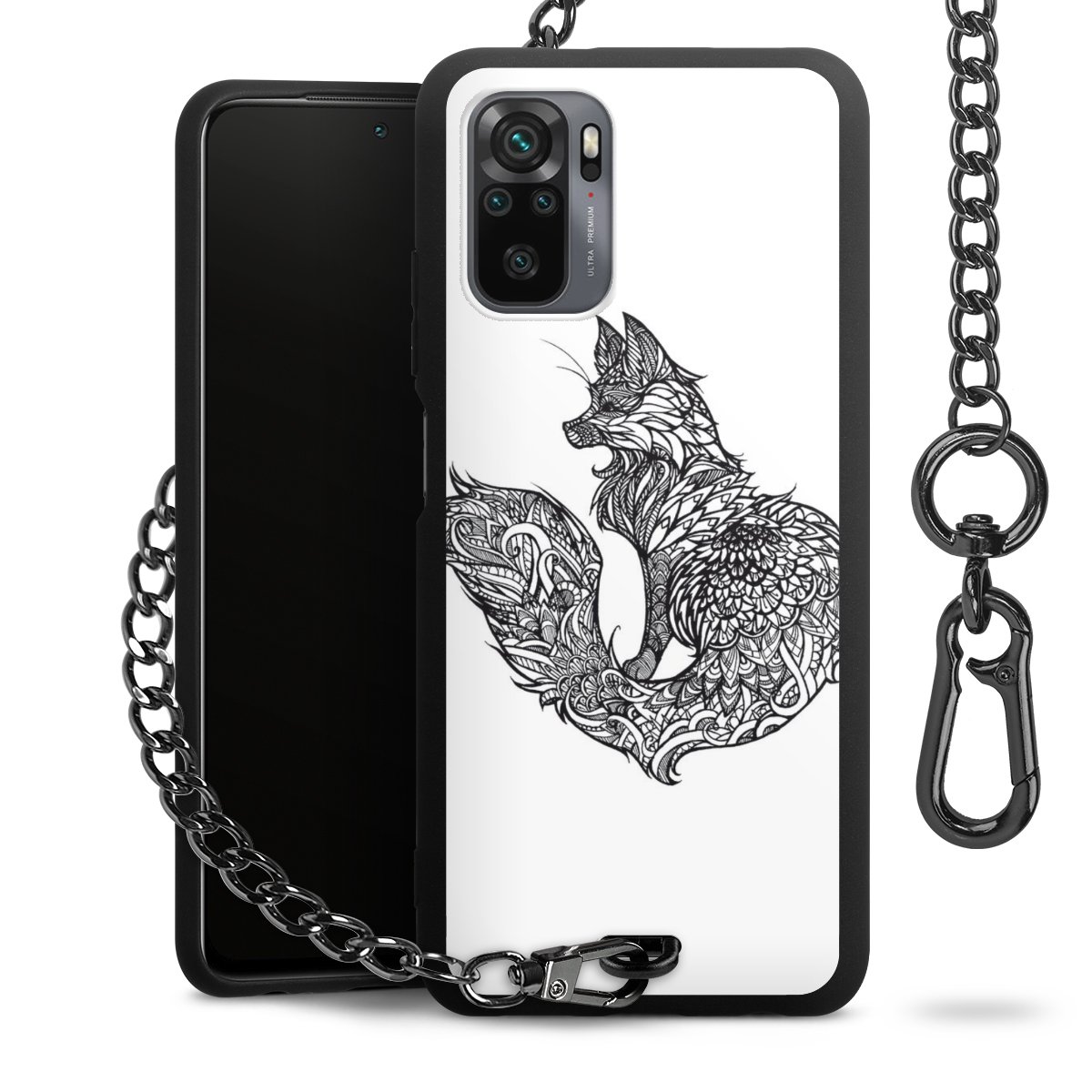 • Mattschwarze Handyhülle mit Metallkette