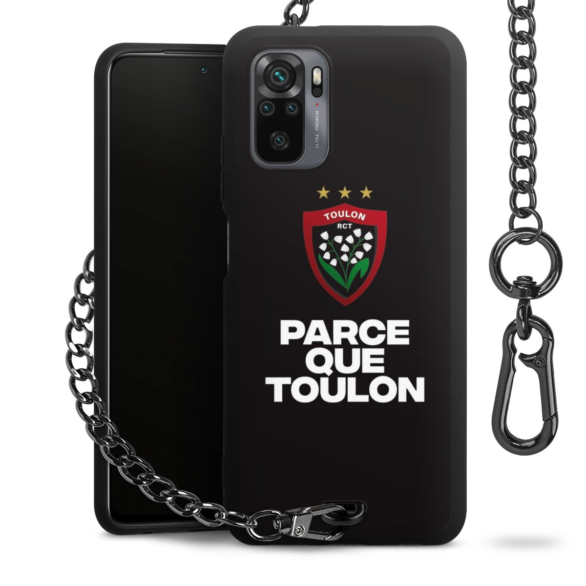 - Mattschwarze Handyhülle mit Metallkette
