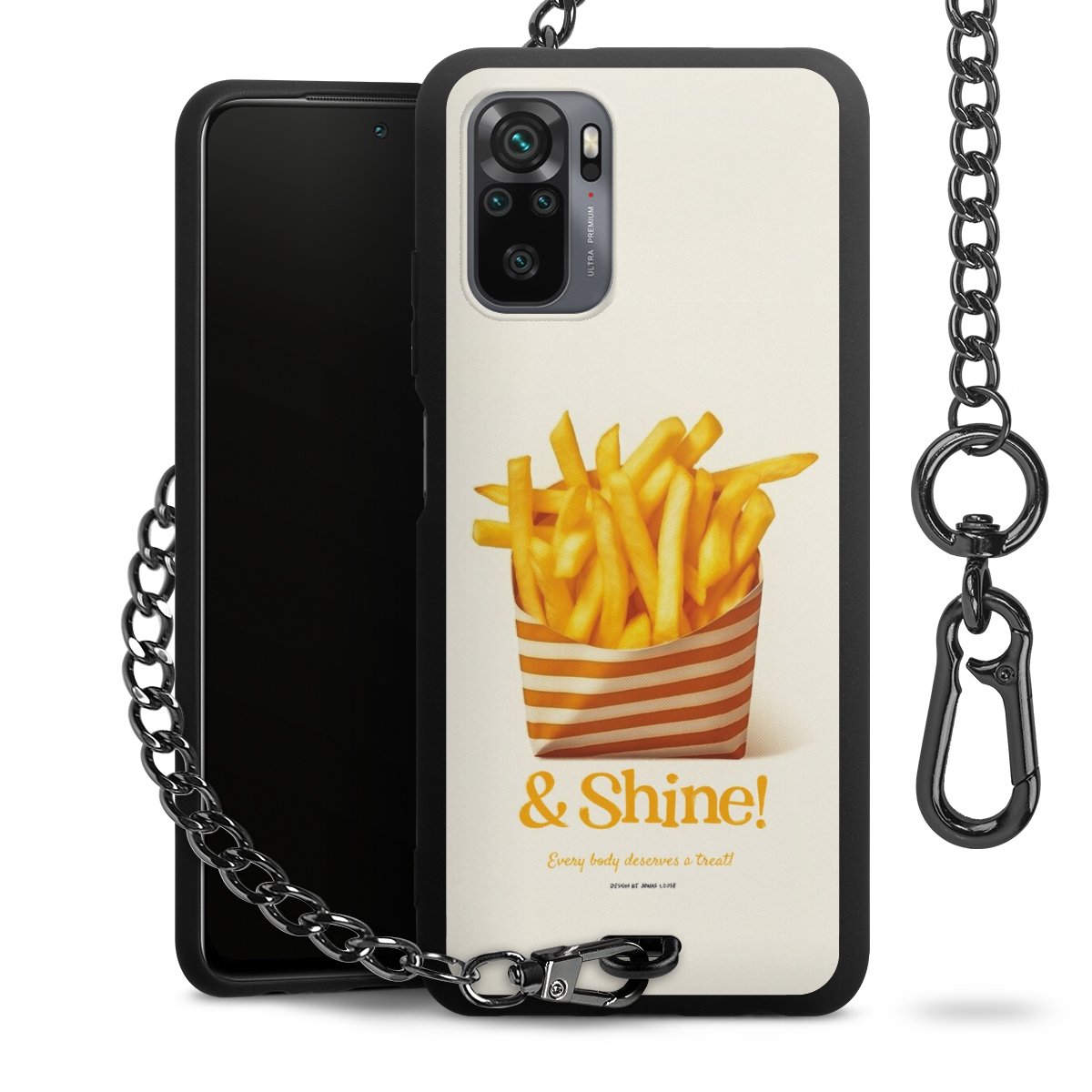 Die mattschwarze Silikon-Handyhülle besteht aus robustem TPU (thermoplastisches Polyurethan). Sie ist flexibel und schützt Dein Smartphone vor Stößen und Kratzern. Die Kette sowie der Karabinerhaken sind aus Metall in Gunmetal-Optik gefertigt. Für dieses Produkt kommen ausschließlich TÜV-geprüfte Materialien zum Einsatz.